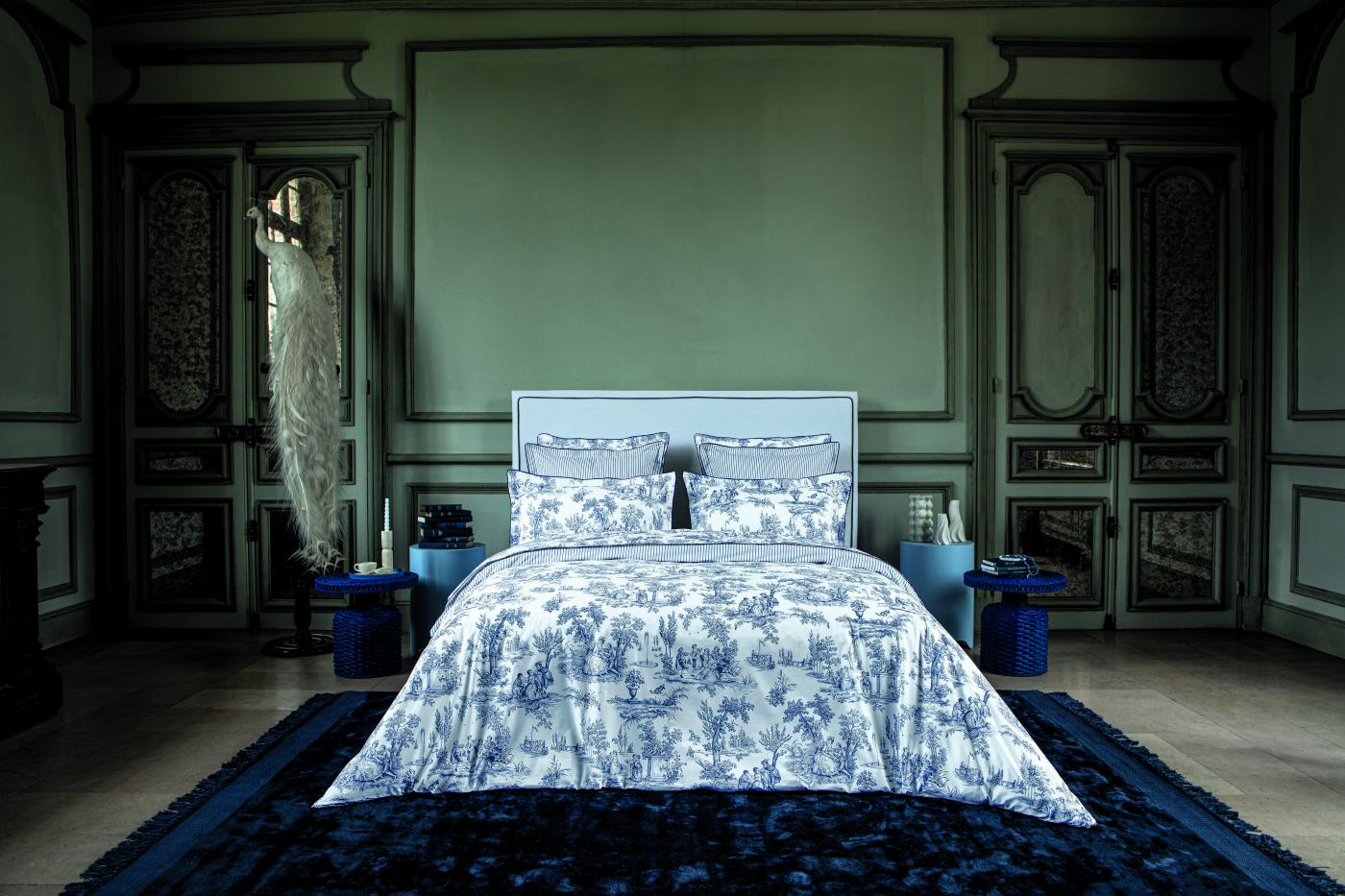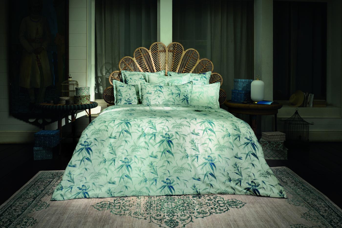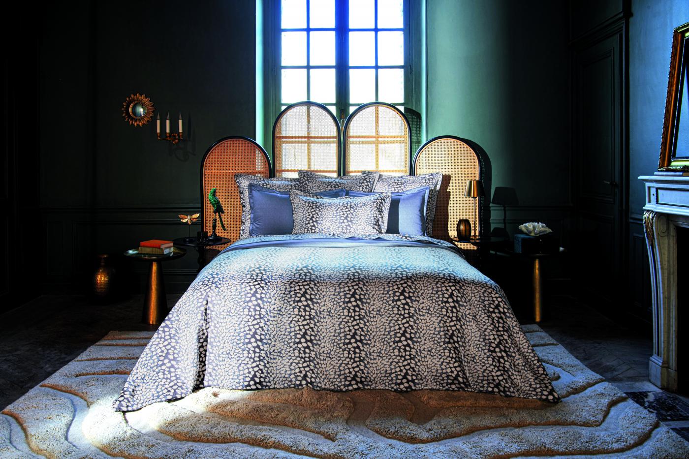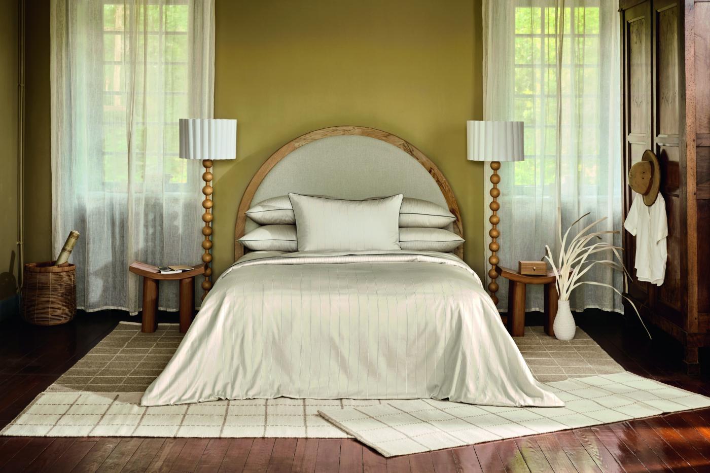 Loin des tonalités franches et tranchées, la parure de lit Brume affiche une atmosphère d'intimité, discrète et apaisante.