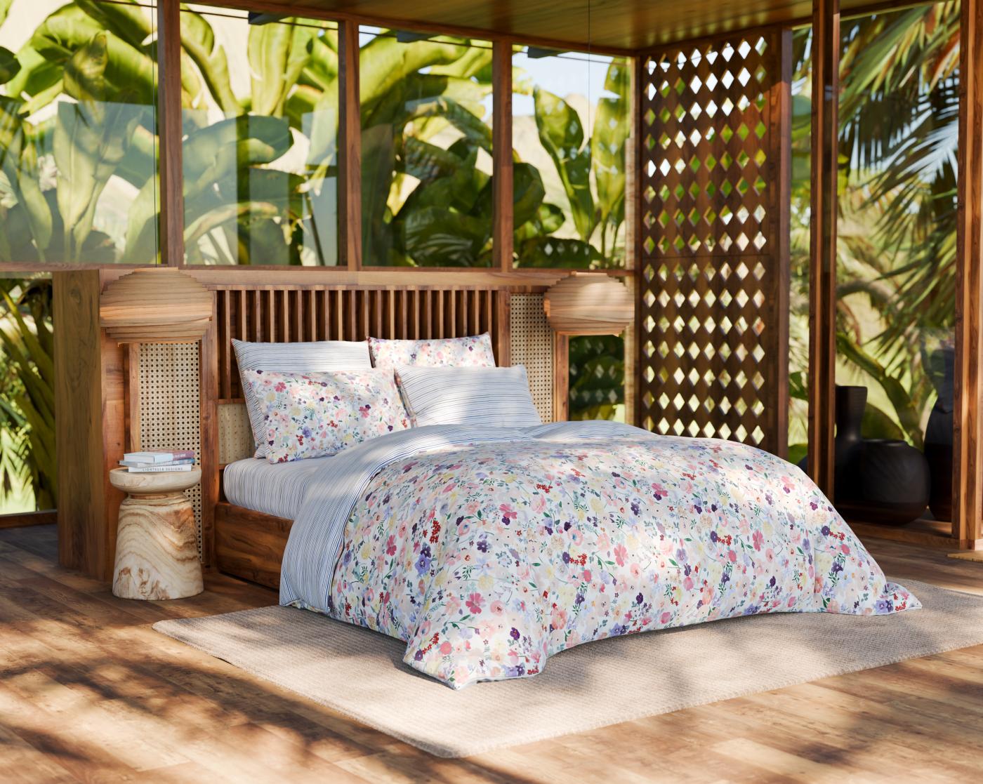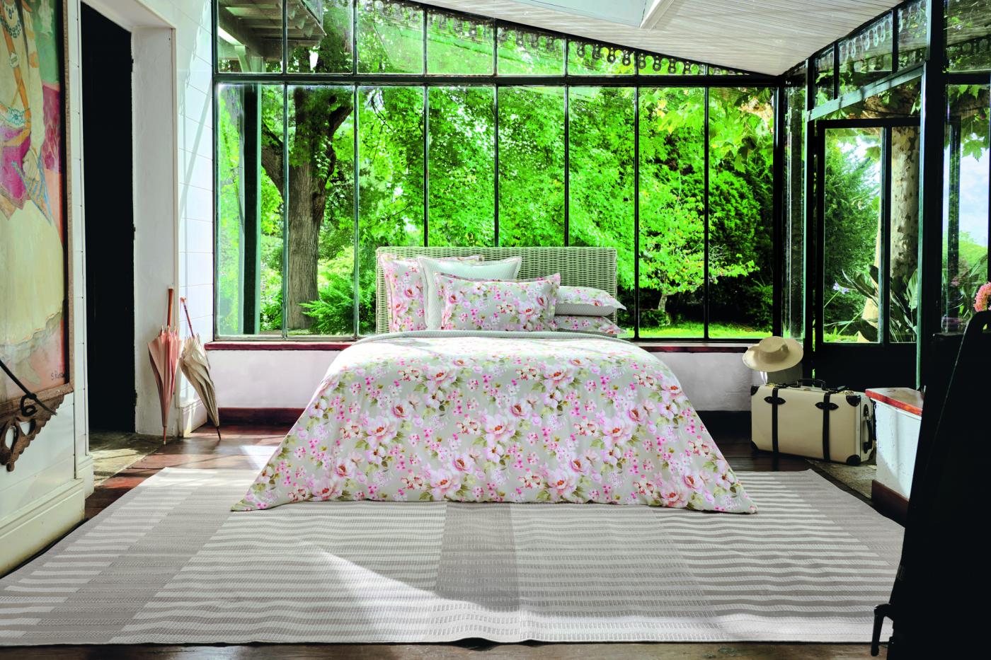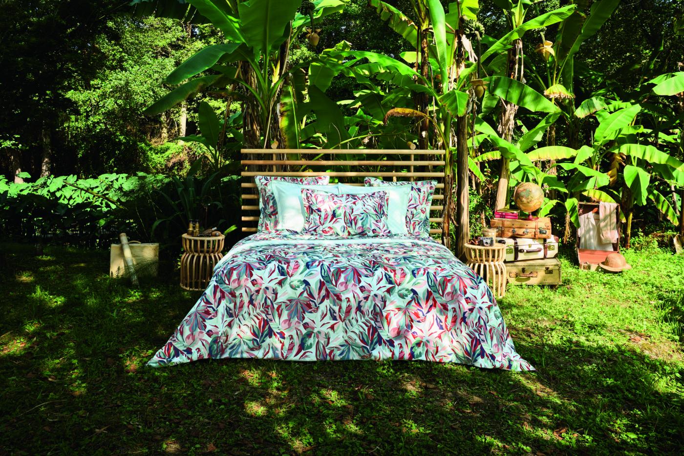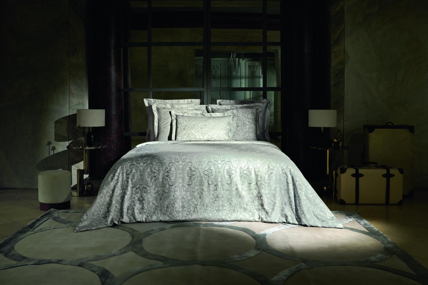 Loin des tonalités franches et tranchées, la parure de lit Brume affiche une atmosphère d'intimité, discrète et apaisante.